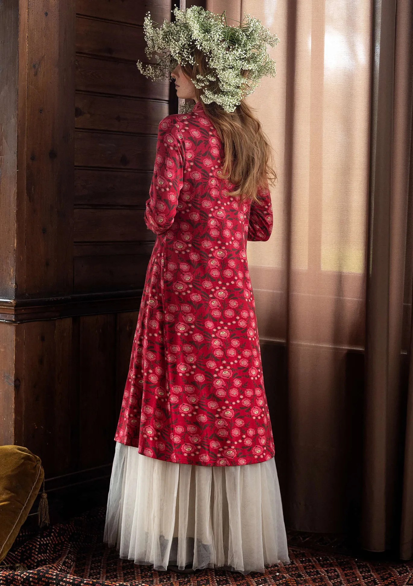 Bedrucktes Jerseykleid mit seitlichen keilförmigen Einsätzen. Runder Ausschnitt und lange Ärmel.