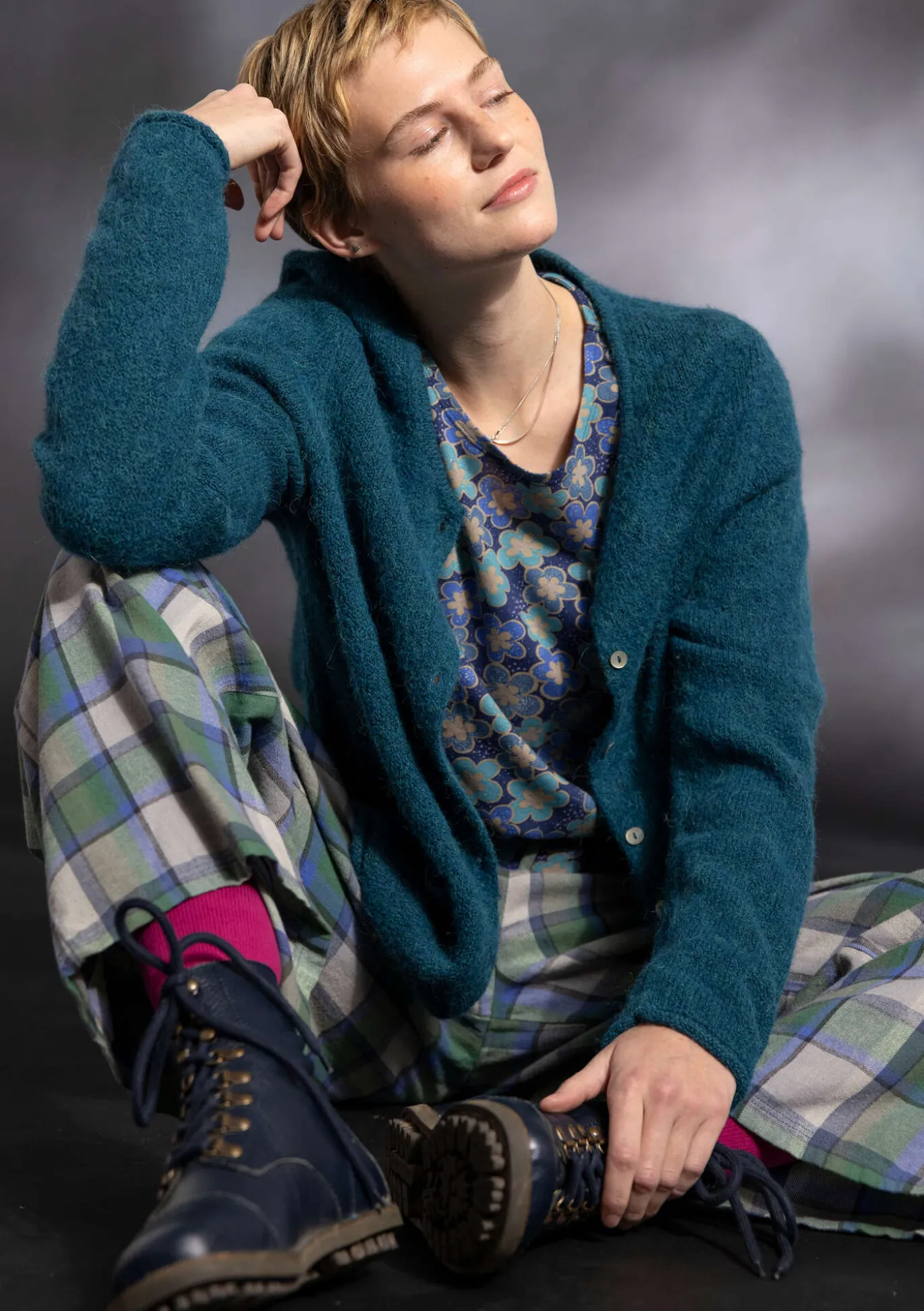Legere Pyjamahose aus kuscheligem Flanell mit Webkaro. Modell mit bequemem elastischen Tunnelzugbund und praktischen Seitentaschen. Aus Reststoff gearbeitet.