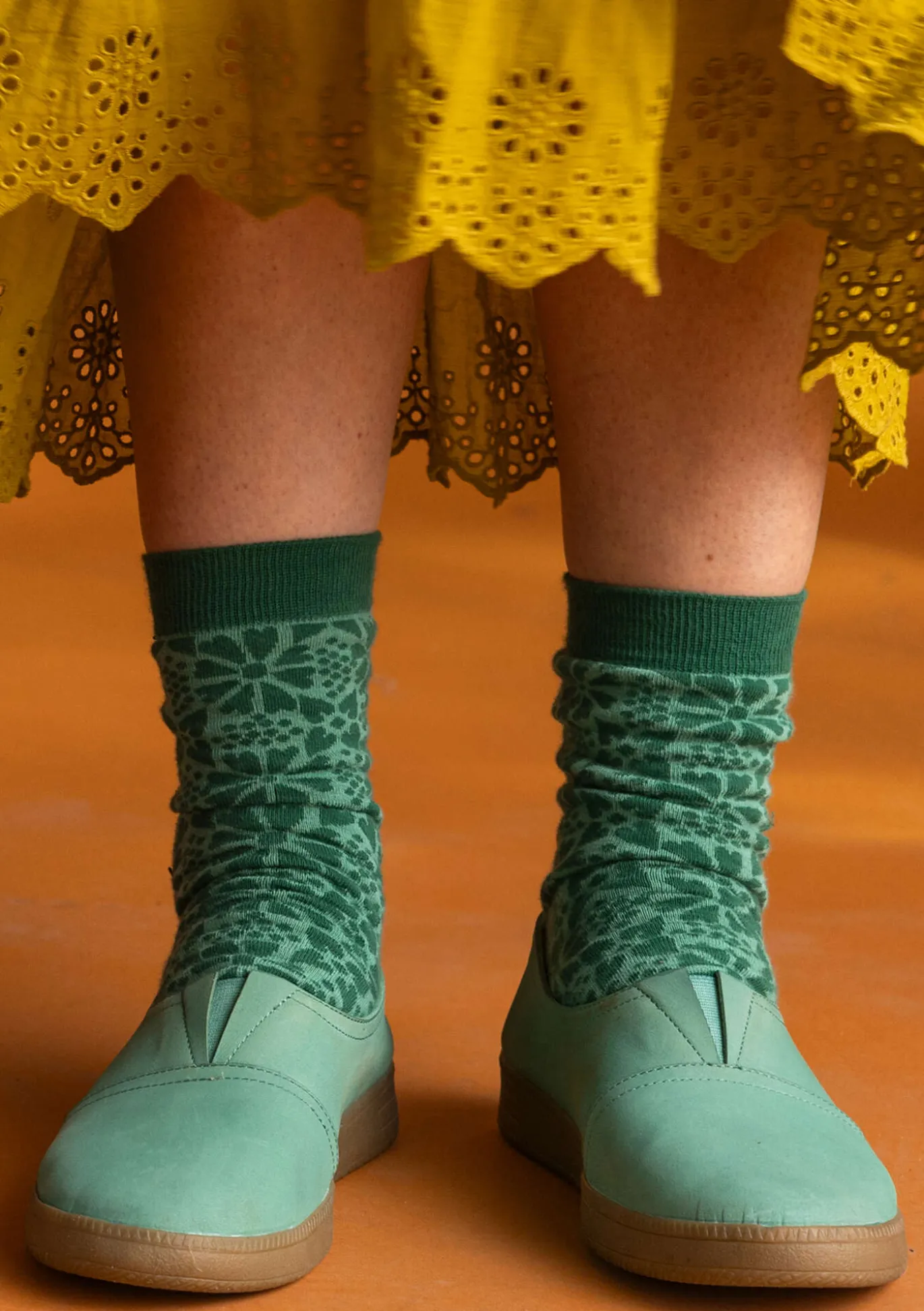 Socken mit folkloristischen Blumen im Grafikstil. Weiches, bequemes Rippbündchen.