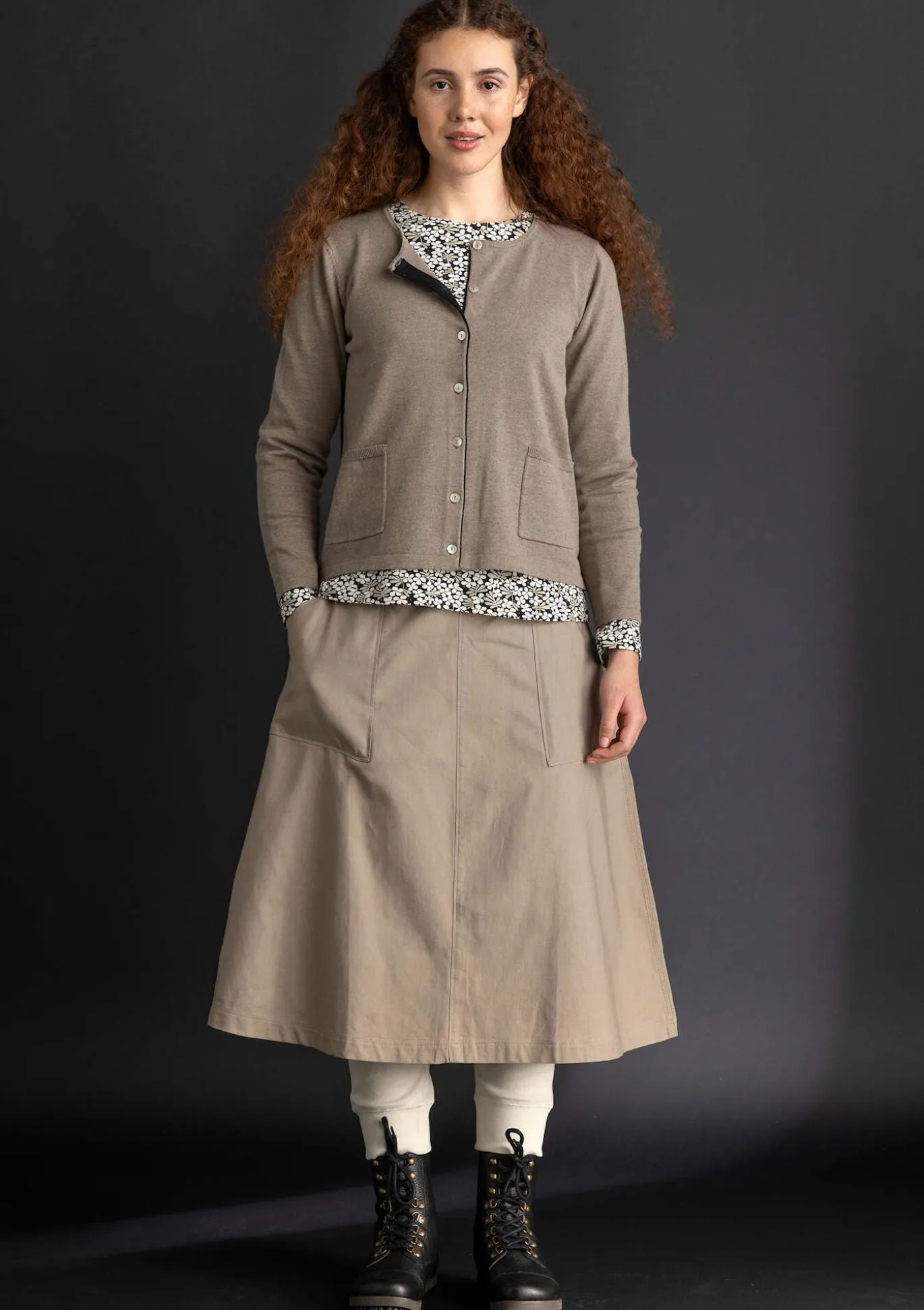 Schlichtes, kombifreudiges Modell mit langen Ärmeln. Hübsch kontrastierende Rollkante vorne und als Akzent auf der Sauminnenseite. Zwei praktische Taschen mit Rippblende am Eingriff. Perlmuttknöpfe.