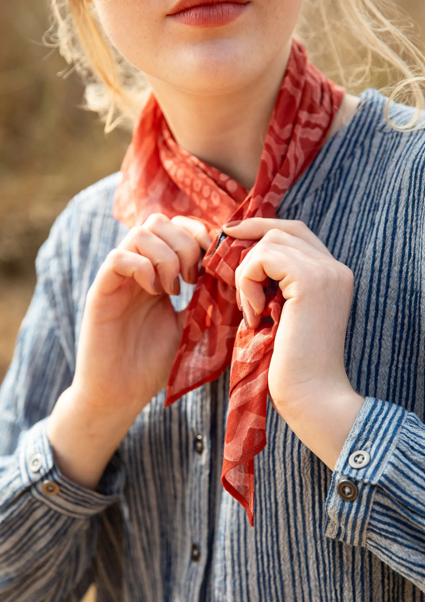 Dreieckiges Tuch mit handwerklichem Blockdruck, schön um den Hals zu binden.
