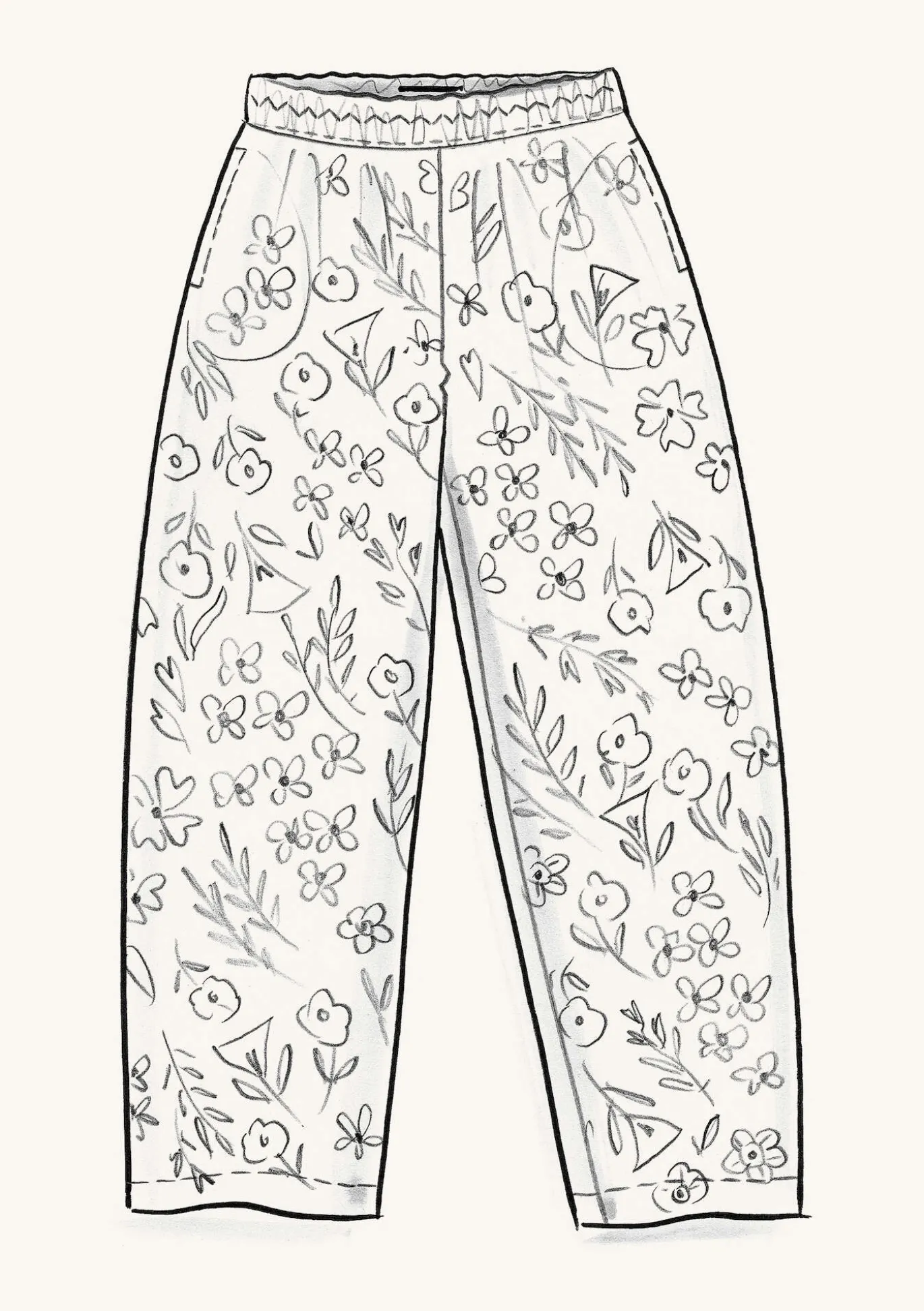 Knöchellange Hose mit innen liegendem Gummizug im Bund und Seitentaschen.