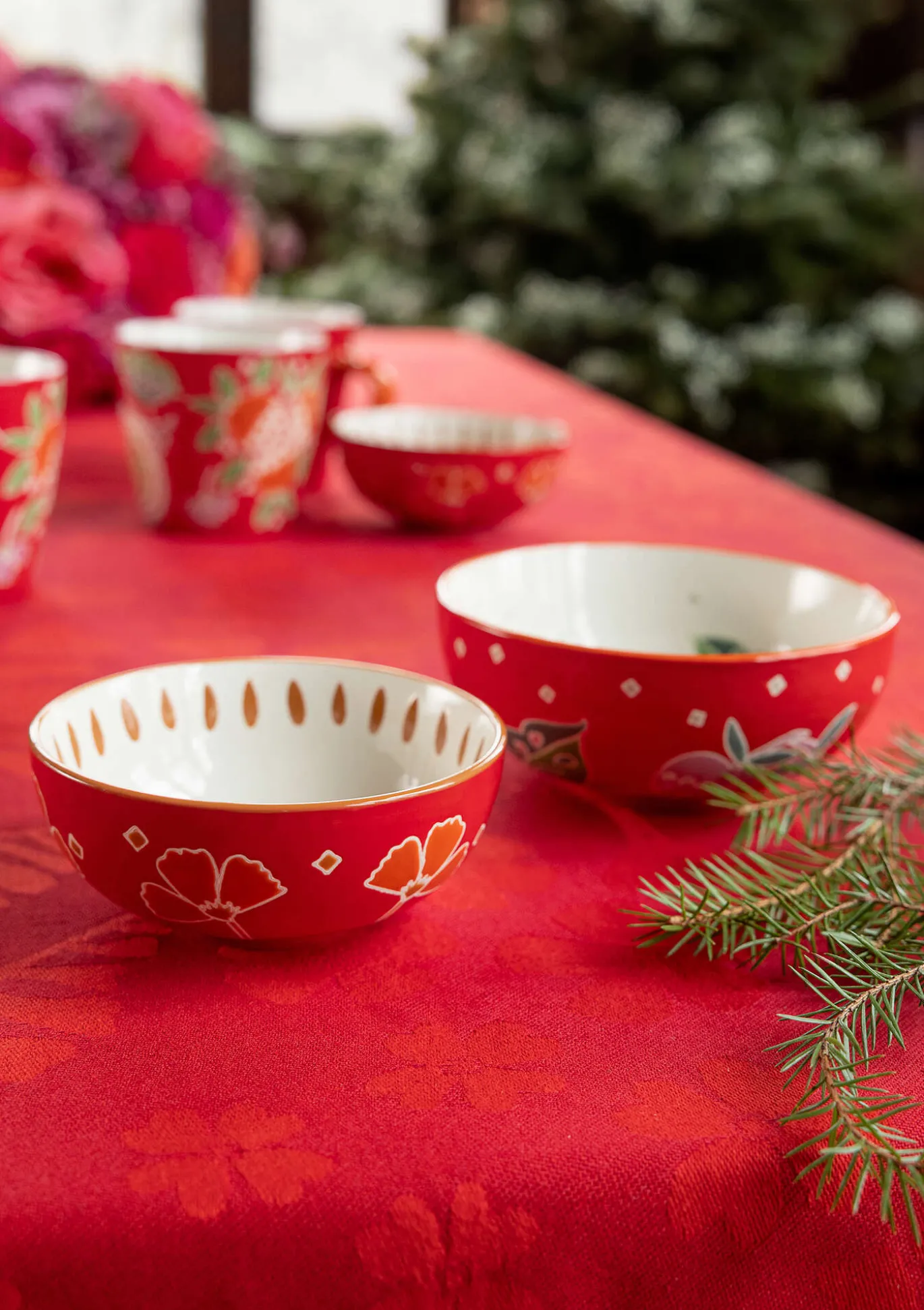 Zwei hübsche Keramikschalen mit handgemalten Früchten und Blättern in schönen Farben. 2er-Set mit stapelbaren Schalen in zwei Größen.