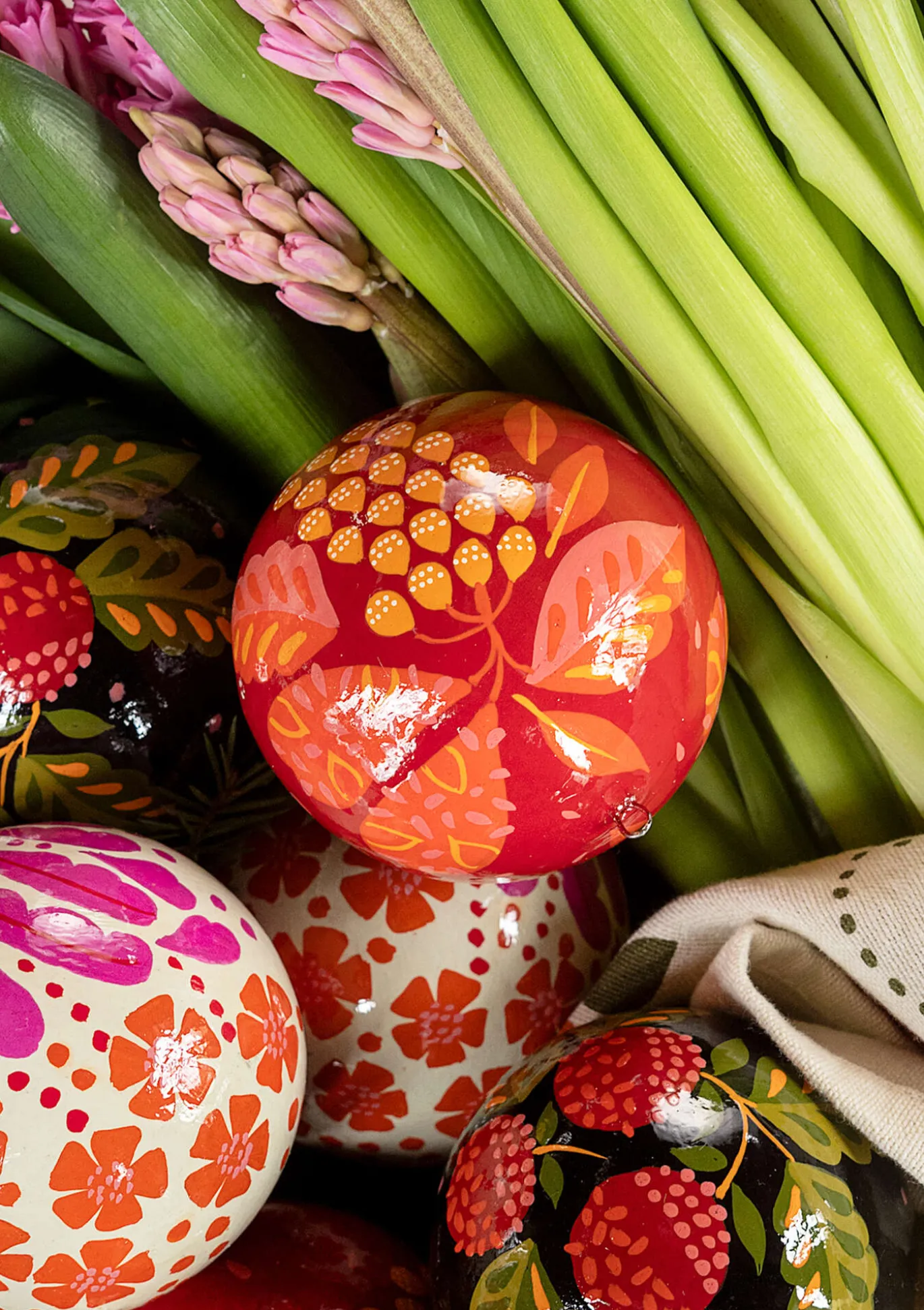 Unsere klassische handbemalte Weihnachtskugel aus Papiermaschee. Zu haben in verschiedenen Farben und Mustern, die das Zuhause verschönern. Goldfarbener Aufhänger.
